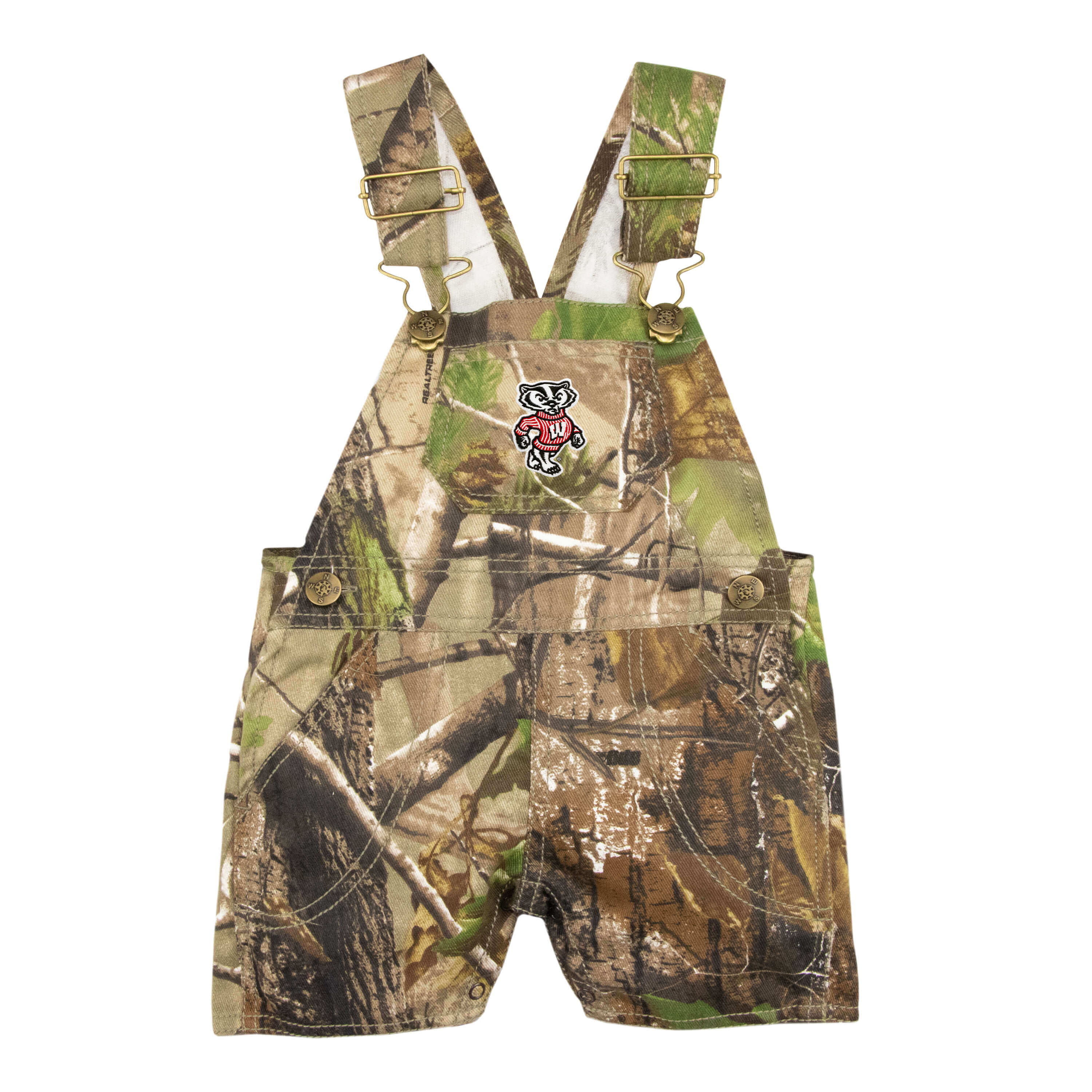 Blend in with nature while standing out in style with these RealTree Camo short leg overalls, featuring officially licensed team embroideries. It’s the ideal combination of cute and sporty for any outdoor-loving young fan. Perfect for playtime or gamedays, these overalls offer a cute and sporty look that's irresistibly charming.