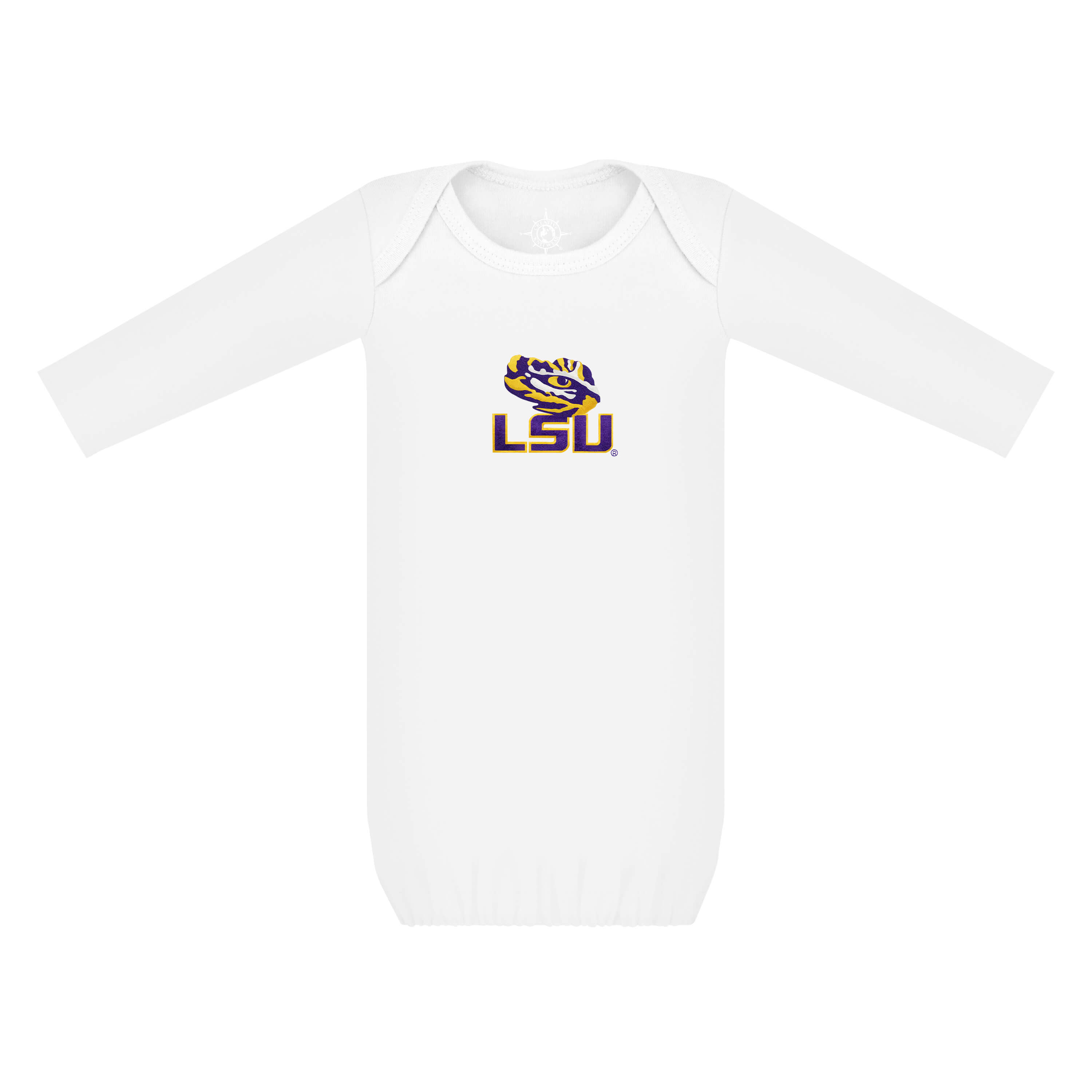Dressing your baby has never been easier! Our lap shoulder gowns eliminate the frustration of snaps and zippers, making diaper changes a breeze. Add this practical and stylish item to your baby's collegiate collection today. Officially licensed - featuring team embroidery.